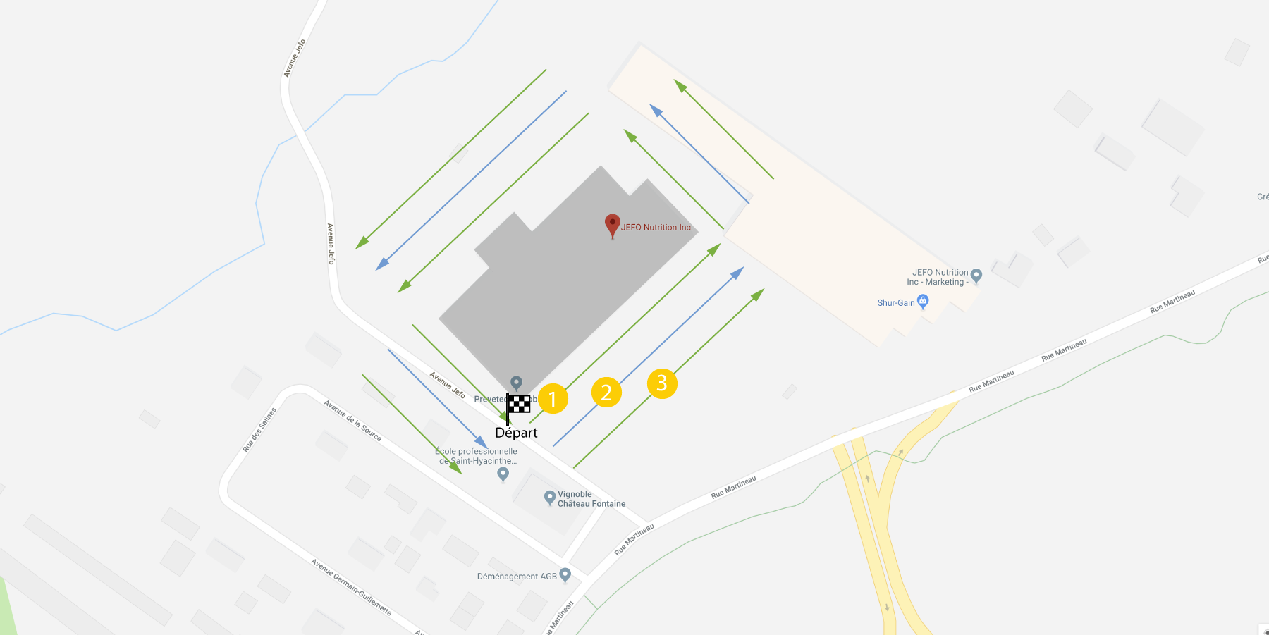 Étape 1 : 400 m de course à pied (un tour de l’entrepôt).